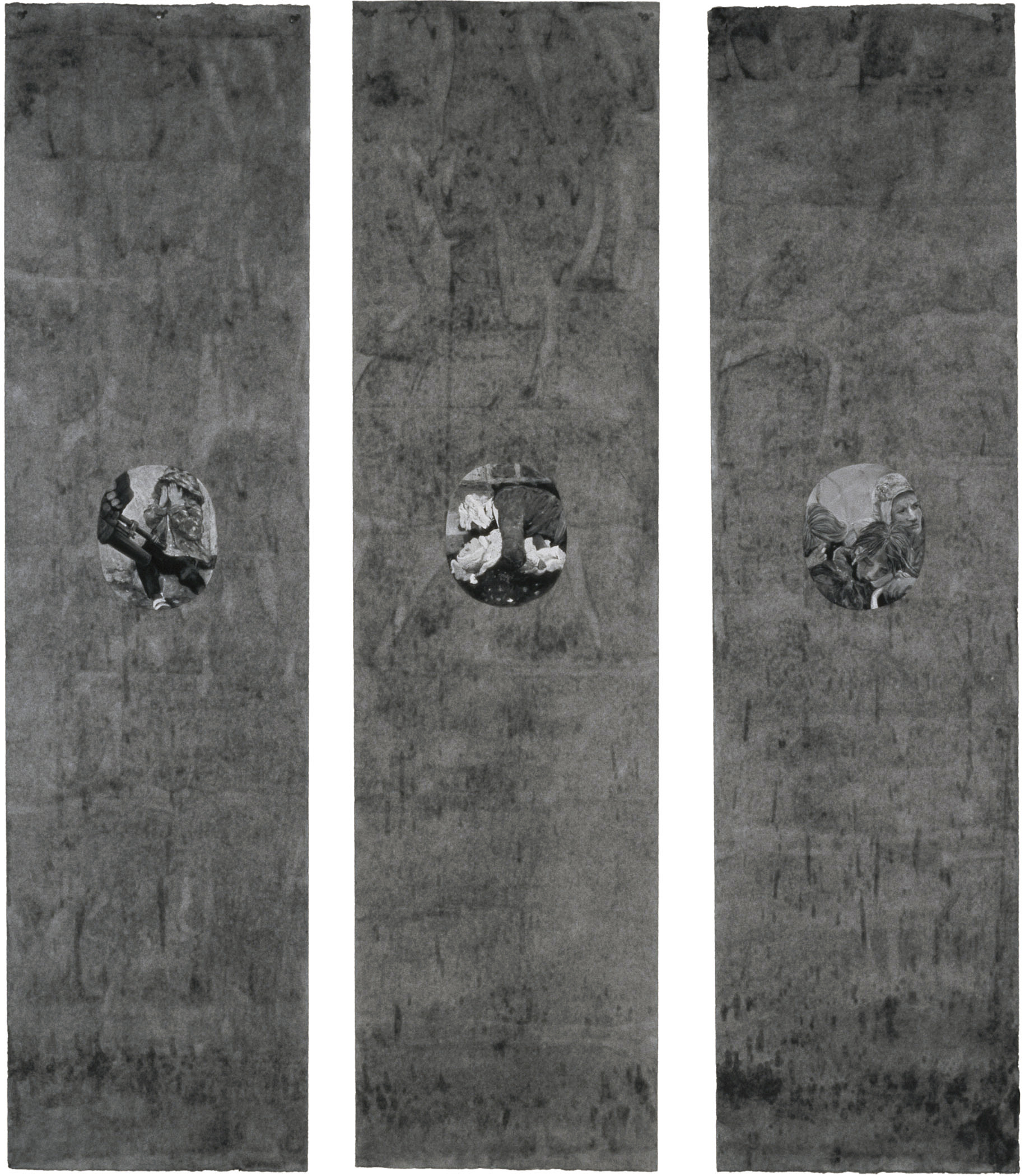 Passage (2004) Above: Passage (Iraq), Passage (Halabja), Passage (Skopje). Detail of Passage (Iraq) at top. These are 3 of 10 scrolls in the Passage group. 69″ x 18″ each. Mixed mediums on mulberry paper. Like Loading... Related